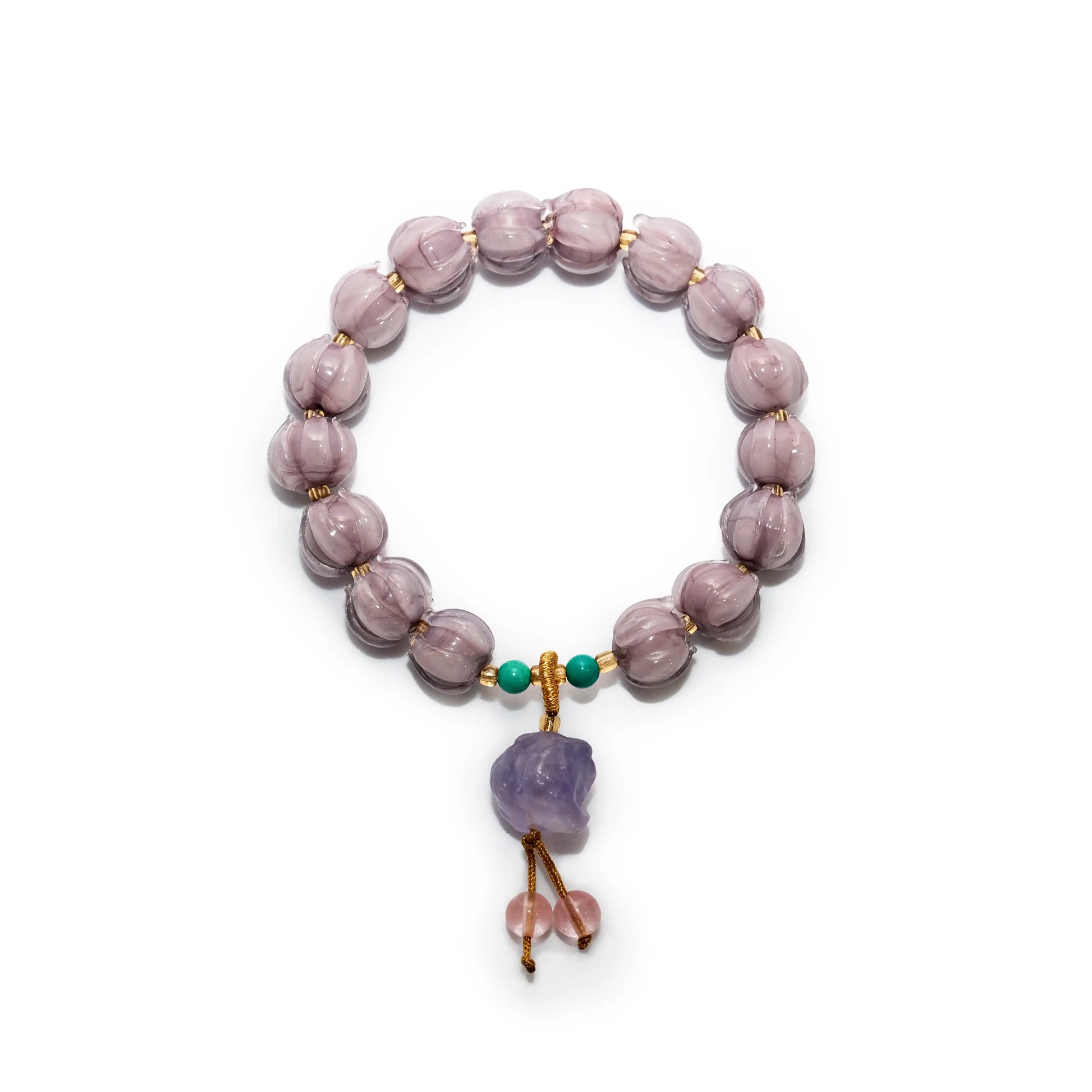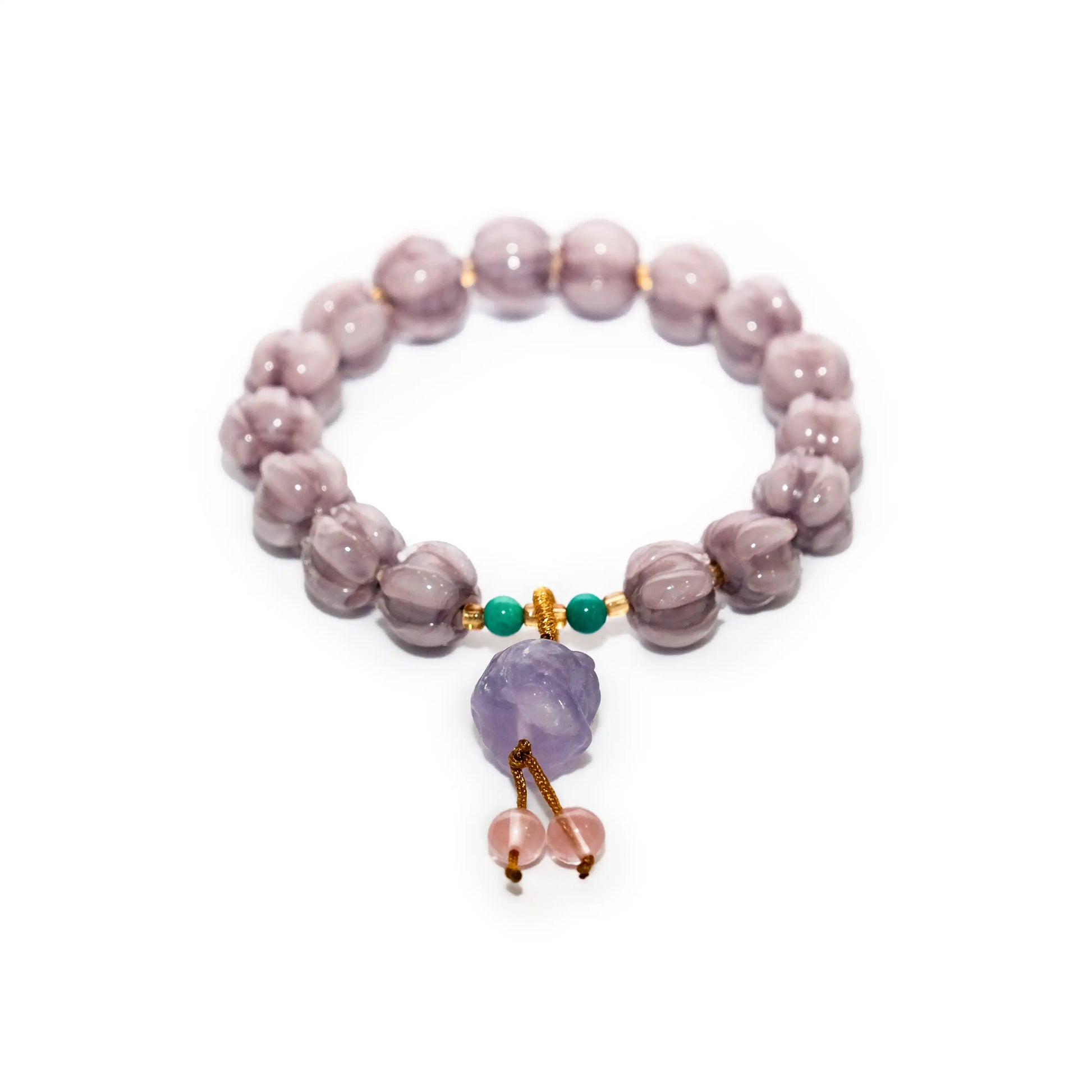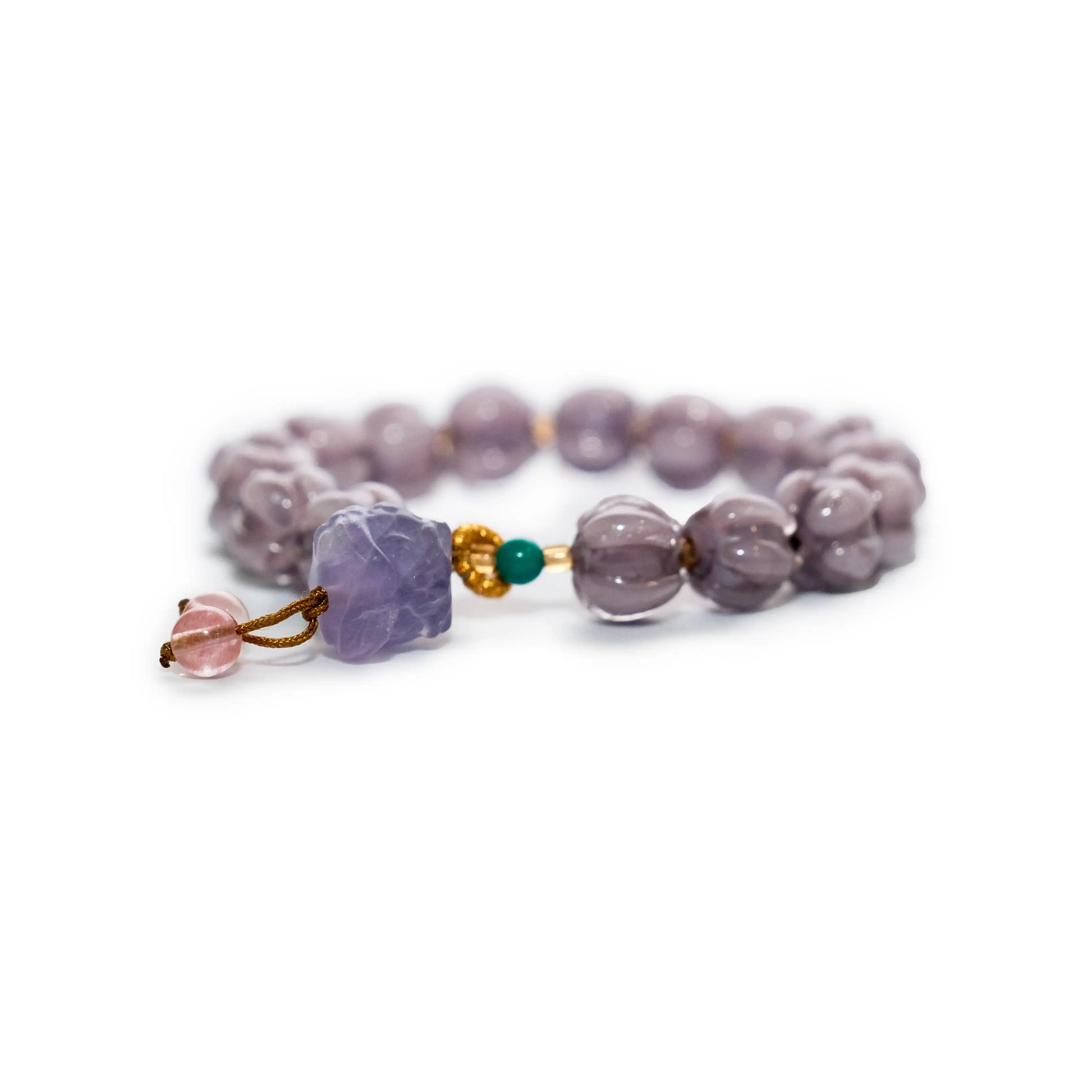 Lotus-Engraved Bracelet with Amethyst Raw Stone Pendant