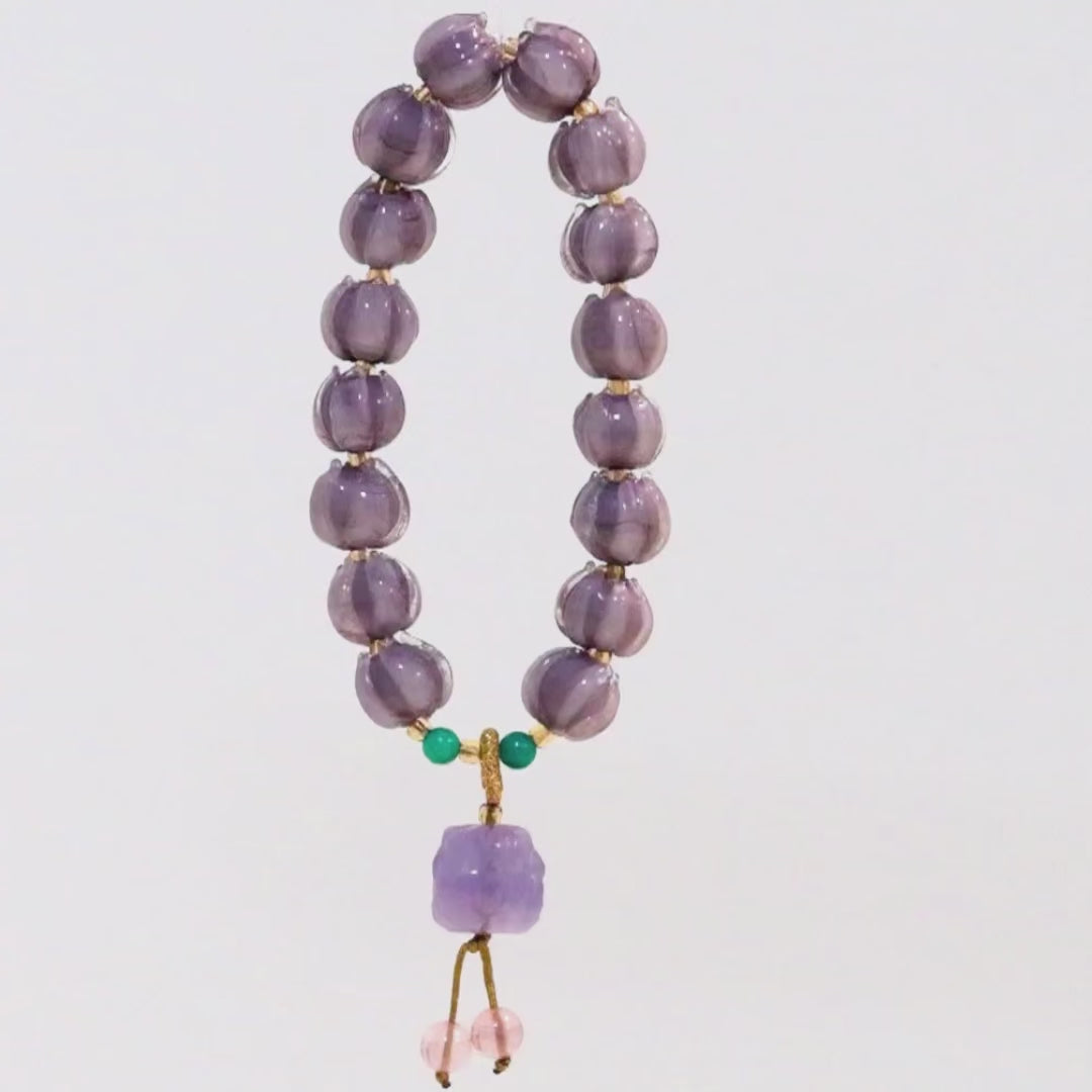 - 15Β lotus-engraved amethyst beadsΒ (12.4mm)
